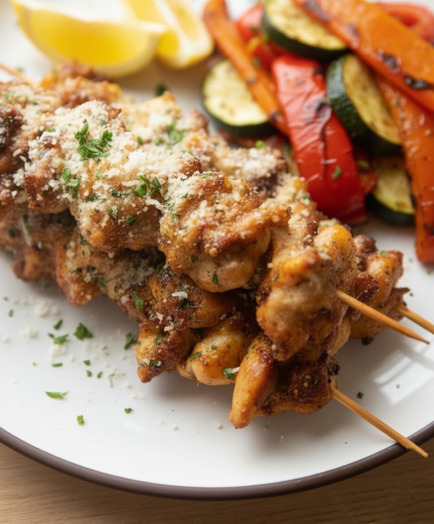 Juicy chicken cubes marinated in ranch, garlic, and parmesan, then grilled to perfection. Perfect for weeknight dinners, BBQs, or party appetizers.