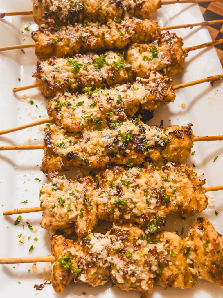 Parmesan adds a nutty and salty flavor that melts beautifully on the grilled chicken. It creates a light crust that makes every skewer extra delicious.